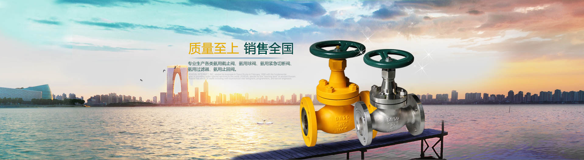 氨用截止閥的高壓腔與鋼瓶連接,低壓腔是氣體的出口,通往使用系統。高壓表的示值是鋼瓶內貯存氣體的壓力。低壓表的出口的壓力可以由調節(jié)螺桿來控制。 在使用氨用截止閥的時候,先打開鋼瓶的總開關,之后順時針轉動低壓表的調節(jié)螺桿,讓其壓縮的彈簧 傳動薄膜、彈簧墊塊和頂桿而將活門打開。這樣的進口的高壓氣體是由高壓室經過節(jié)流減壓后進入低壓室,經出口通往工作的系統。在轉動調節(jié)螺桿,改變活門的開啟的高度,調節(jié)高壓氣體的通過量達到要的壓力值。氨用截止閥都裝有安全閥。保護氨氣減壓閥的裝置,也是氨用截止閥出現故障的信號裝置。由于活門墊、活門損壞或由于其它原因,會導致出口壓力的上升超過一定許可值時,安全閥會自動來打開排氣。